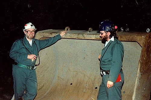 Dr. Art McDonald and Dr. Daniel Cluff during the excavation of the SON cavity on the 6800 L at Creighton mine.